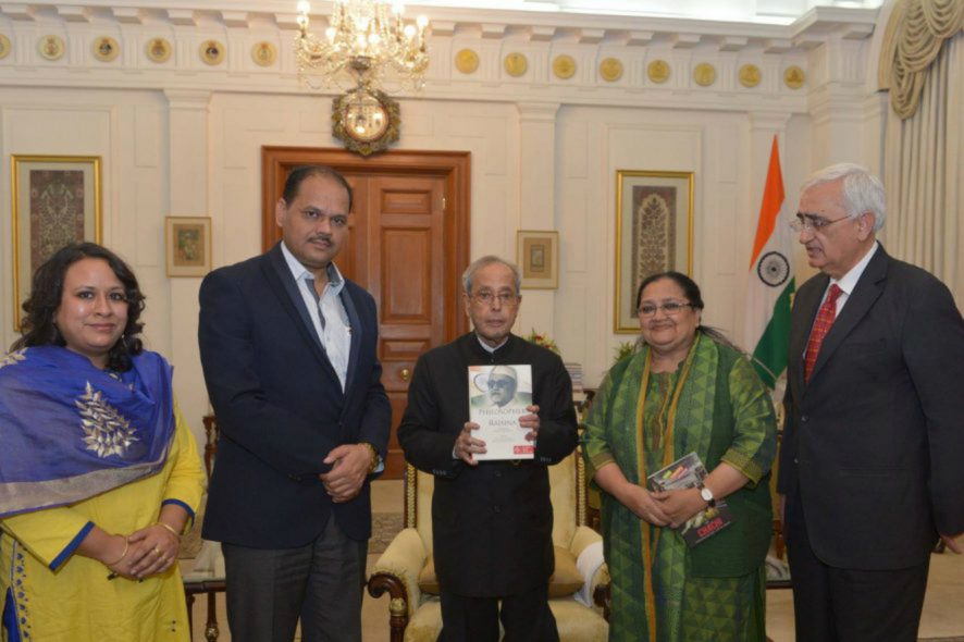 Shri Salman Khurshid, Senior Advocate presented a copy of the book “Philosopher of Raisina” to the President of India, Shri Pranab Mukherjee.