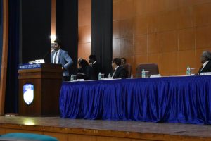 Guest of Honour Mr. Bharat Chugh, Partner Designate, Luthra and Luthra Law Offices, began his address with a beautiful quote by Wordsworth. He shared an anecdote from his personal life when he was working as a young judge highlighting the enormity of his designation while giving a judgment and taking care of the human rights as well, which he summarized beautifully in the form of a short poem. He reinstated that each decision made as a judge upholds someone’s rights. He also related lawyers to social engineers, giving the example of an increase in Pro-Bono cases and increasing social responsibilities of law firms.