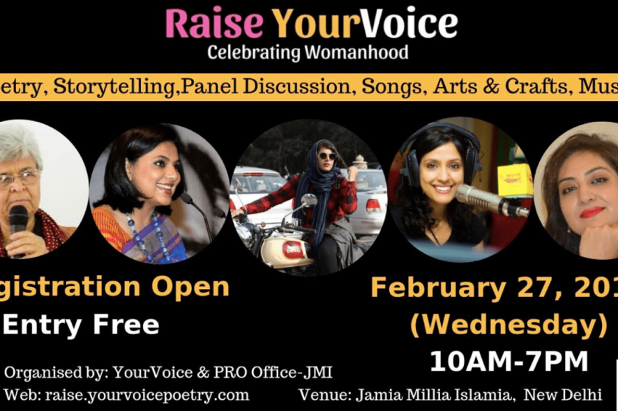 YourVoice & PRO Office of Jamia Milia Islamia is organizing “Raise Your Voice”, a kind of India’s first Women Literature Festival. This event is a one-day festival celebrating the extraordinary act of courage, determination and empathizing struggles patriarchy offer in modern times. This one- day fest will rejoice the stage with expressions, emotions, and articulation of women through poetry. The event will seek the presence of eminent women leaders who believed in smashing the hackneyed ideas and set a role model for other women in a row.