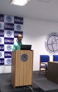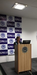 17:30 The inauguration ceremony is underway! We have Organizing Committee Members Soham Munshi and Akanksha Singh who introduce the members on the dais- Prof. Dr. S. Shanthakumar, Director, GNLU; Dr. Jagadeesh Chandra T.G., Registrar, GNLU; Dr. Mamata Biswal, Dean of Academic Affairs, GNLU; Dr. Girish R., Faculty Convener, GIMC 2020 Organising Committee.