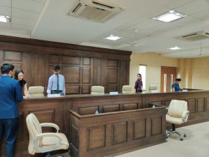 14:45 The preparation for upcoming rounds is on with full power. The Court Room is all ready to host the first round of #GIMC2020 Semi-Finals! If you are around the campus, do come to watch the rounds!