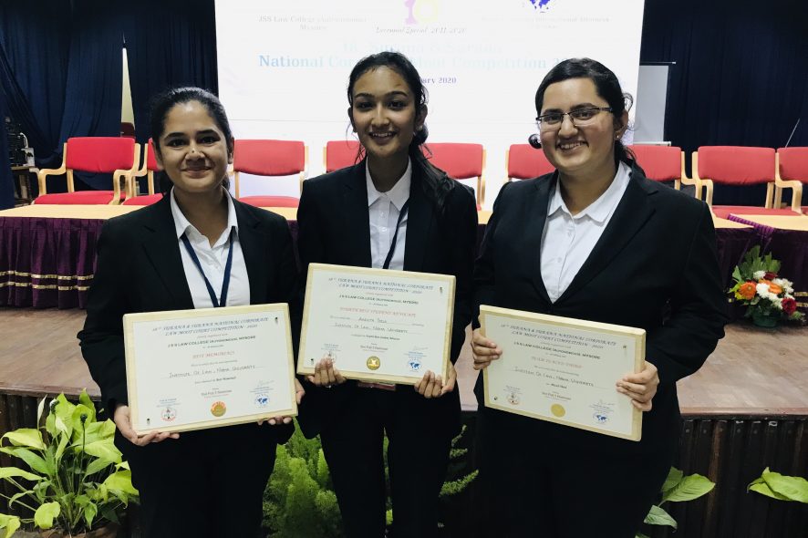 ILNU team comprising of Akshita Totla, Paridhi Rastogi and Aashna Shah bagged the citation for Best Memorial and were also adjudged as 3rd best team at the 18th Surana & Surana National Corporate Law Moot Court Competition, 2020. Akshita Totla was also awarded 4th best advocate.