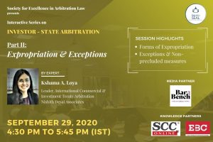 The Society for excellence in Arbitration law, RMLNLU is organizing a “Three-part Knowledge Session on Investor-State Arbitration”. The last two parts of the series are to be held on 29th and 30th September, 2020.