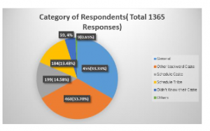 ● Caste – Out of 1365 responses received, around one-third respondents (33%) belonged to Other Backward Classes (OBC)and General Category. 14.5% and 13.4% of the respondents identified themselves as Scheduled Castes (SCs) and Scheduled Tribes (STs) respectively.