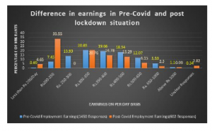 ● The earning capacity of those who are employed has also been drastically affected. To give our readers a perspective, we have presented a contrast of their earnings during the pre- covid and post lockdown era.