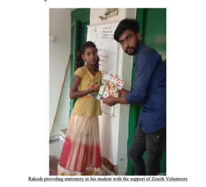 3. Rakesh: A ray of Hope – Rakesh is from a small village called Belkhedi, in the Sehpura Tehsil of Jabalpur. He was a supervisor in a reputed company, earning around 17,000 rupees a month for his livelihood. Soon, however, Covid struck, and he had to come back to his village owing to insufficient means of sustenance. Rakesh has a diploma and good command over maths and science. And when we contacted him, we were introduced to a heart-warming story. Speaking to us, he said that once he came back, he was moved by the situation of the school students in his village who mostly failed in Maths and English, leaving their basic education hanging by a thread. These children dropped out of school as early as after 8th and 10th standard. In an entirely selfless gesture, he didn’t ask us for employment help but said that he wants to settle down in the village and he plans to start coaching for these children, where he would teach them Maths and Science for free. Moved by Rakesh’s noble intentions, Zenith Volunteers crowdfunded and sent copies, pens, and pencils for him and his students. Rakesh now wants to bring about constructive change in society. Zenith is trying to get a device for his students to ensure classes in English so he can achieve his goals and help educate the future. In these unpredictable, almost apocalyptic times, Rakesh has been a ray of shining hope, reflective of all the good that human beings can do in the world. His story only serves to remind us at Zenith why we do this work and pushes us to keep moving even when the light at the end of the tunnel seems dim.