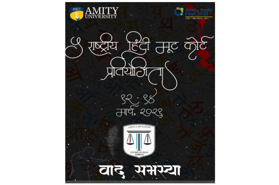 Amity Law School, Amity University, Noida is Organizing the 5th Amity National Hindi Moot Court Competition 2020 to be held from 12th – 14th March 2021.