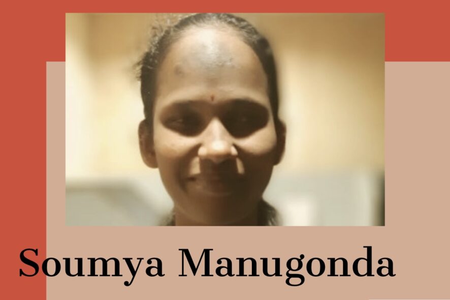 Soumya Manugonda comes from Penugonda village in Telangana. She is visually impaired by birth and has completed her schooling till 10th standard from the Devnar School for the Blind, Hyderabad. She completed the studies for the 11th and 12th standard from the Sai Junior College for Visually Challenged, Hyderabad. She is a very bright student and scored 8 CGPA in tenth standard and 82% in twelfth standard in Telangana State Board. She has had very humble beginnings – her parents are farmers and she has just one younger brother.