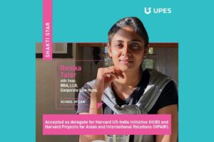 Ronika Tater, a 4th year student pursuing BBA, LLB from School of Law, UPES was accepted as a delegate at Harvard Projects for Asian and International Relations(HPAIR) and Harvard US-India Initiative(HUII).
