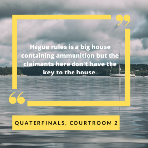 Arbitrator Krishnamurty: “Since you are such a fan of the Hague Rules, can you please refer to Article IV.5 of the Hague Rules?”