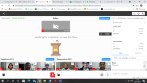 14:03 After some serious technical issues with a couple of judges, the rounds have finally commenced. Claimant Speaker 1 starts confidently but is immediately interrupted by the judge and is questioned upon a jurisdiction issue. She pauses and stumbles through her answer. Moving on with her submissions, she makes the judge note down her submissions but is interrupted again and again! In her nervousness, the speaker misspeaks and does not even realize it. She states, “Apologies Mr. Tribunal”. The judge corrects her saying he’s an arbitrator and not the tribunal. Oh, the horror!