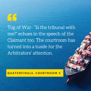 These words from Arbitrator Andrew Tettenborn boosts the confidence of the Speaker and brings a smile on the faces of the Claimant team.
