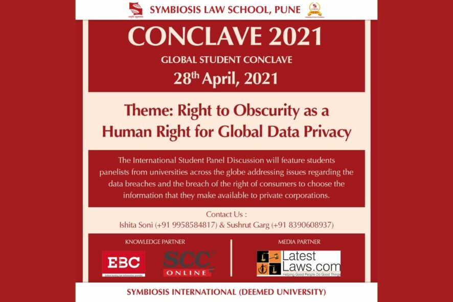 This year, Conclave aims to carry forward the legacy of being a trailblazer of contemporary topics by conducting the First edition of Symbiosis Law School, Pune – Global Student Conclave on 28th April 2021. The SLSP-Student Conclave 2021 shall entail an Online International Student Panel Discussion involving students from International Universities, on the theme, “Right to Obscurity as a Human Right for Global Data Privacy”.
