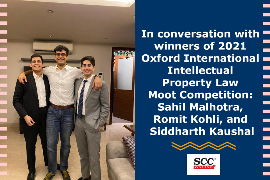 The team consisted of Sahil Malhotra, Romit Kohli, and Siddharth Kaushal of NLUD wins 2021 Oxford International Intellectual Property Law Moot Competition.