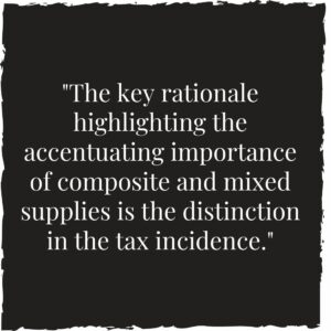 Given the tax incidence, it is evident that ordinarily no supplier would prefer for the supply to be categorised as mixed supply[17] because it implies that all components of the transaction suffer the tax rate earmarked for that particular supply which attracts the highest rate of tax. Such inclination may, however, not exist in case of composite supplies where the principal supply determines the classification as also the rate of GST of the entire transaction. Nonetheless, given that it is not anyone’s choice as to the rate of tax, each transaction needs to be closely reviewed to examine the classification of the supply and whether it attracts composite supply or mixed supply characterisation. Even though the determination involves both objective and subjective tests and thus makes the classification exercise onerous, nonetheless, in view of the statutory mandate, it is crucial for the suppliers to appreciate the nuanced concepts underlying composite and mixed supplies and undertake appropriate classification of the supplies.