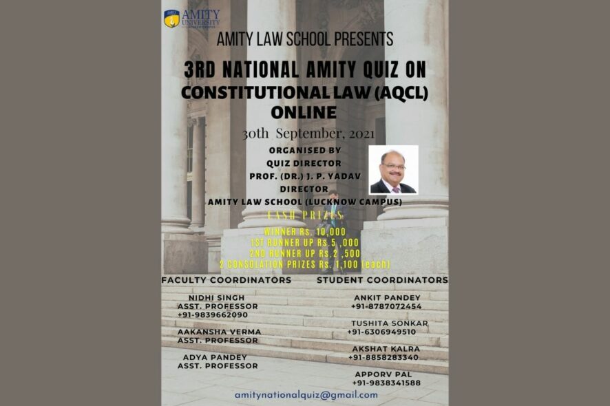 Amity Law School, Amity University, Uttar Pradesh, Lucknow Campus is organizing the 3rd National Amity Quiz on Constitutional Law (AQCL) on 30th September 2021.