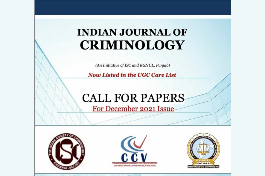The Centre of Criminology, Criminal Justice and Victimology (CCV), Rajiv Gandhi National University of Law and Indian Society of Criminology have signed a MOU, for joint publication of Indian Journal of Criminology in September 2021. Thus, the centre metes out a call for papers to be published in the December 2021 edition of the journal.