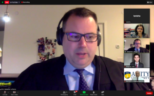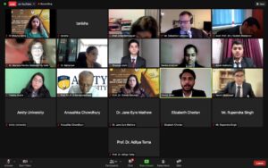 17: 23 hrs. – Ms. Erika Hennequet, Lecturer of International Law, University of Sheffield, UK, earnestly stated that her experience was extremely positive. She said the young students were positive about it, too. Sometimes mooting could be a scary endeavour because the mooters did not know what the judges were going to ask, and were willing to be assessed, but the participants were very gracious and patient with the judges! Students and judges alike enjoyed the intellectually challenging experience. She emphasised that in mooting they impersonated counsels and judges because of their passion for law. Students had made a great effort in that respect. She was happy to know that Amity was organising a moot competition despite the restrictions imposed by the pandemic. She thanked the organisers for putting together the event and wished everyone all the best.