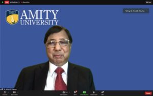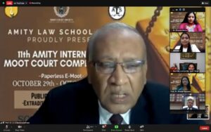 16:51 hrs. – Prof Dr. D K Bandopadhyay, Chairman, Amity Law School Noida, welcomed all lordships to the 11th edition of the Amity International Moot Court Competition. He also welcomed the judges of the final round. He spoke about how his wish for all Amitians is to be leaders, not followers. He also mentioned how our Chancellor, Dr. Atul Chauhan, offered a fee waiver for students who lost their earning parent(s) to the Covid pandemic. In the education sector, it is often said what Amity thinks today, the world thinks tomorrow. He thanked Dr. Bhavna Batra and her entire team for organising the event. He spoke about how it happens to be the birth anniversary of India’s idol, Sardar Vallabhbhai Patel, who wanted to take India to new heights. He thanked our founder-president for giving us this wonderful opportunity.