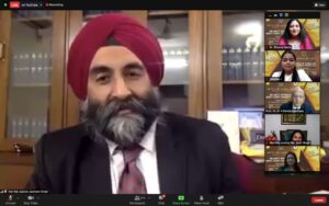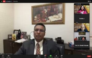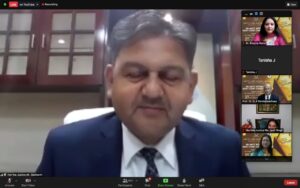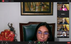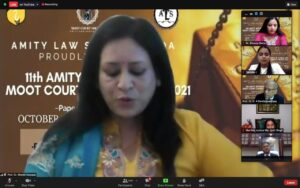 17:00 hrs. – Hon’ble Justice Jyoti Singh, Judge, Delhi High Court, was delighted to be a part of the valedictory ceremony and congratulated Amity for hosting the 11th edition of mooting, despite the global challenge thrown up by the pandemic. She was amazed that 100 teams had registered. She got a chance to see the moot proposition and commended the students for grappling with such an issue and enduring the tough propositions. Students had a multidimensional approach to what the other side would be asking, so it gave one a chance to see both sides and gain immense confidence for the day a student actually stepped into the courts. Many teams participated but two reached the finals and one would take the trophy. What was critical was that it was a learning experience for students who interacted with people from across the borders. She quoted Einstein to stress the point that ‘a person who never made a mistake never tried anything’, and novelist Samuel Beckett — ‘Ever tried. Ever failed. No matter. Try Again. Fail again. Fail better’ — to drive the point that there should be no reason to feel demotivated.