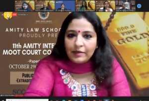 11:15 hrs. – Our engrossing final round has been graced by our Dr. Shefali Raizada Ma’am, Additional Director Amity Law School. Her presence in the event has definitely spurred motivation among our participants and attendees.