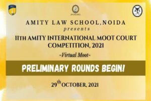 It is a matter of utmost unbridled joy and pride for us to acknowledge that Amity Law School (AUUP), Noida, will be organizing the 11th Edition of the Amity International Moot Court Competition for the year 2021.