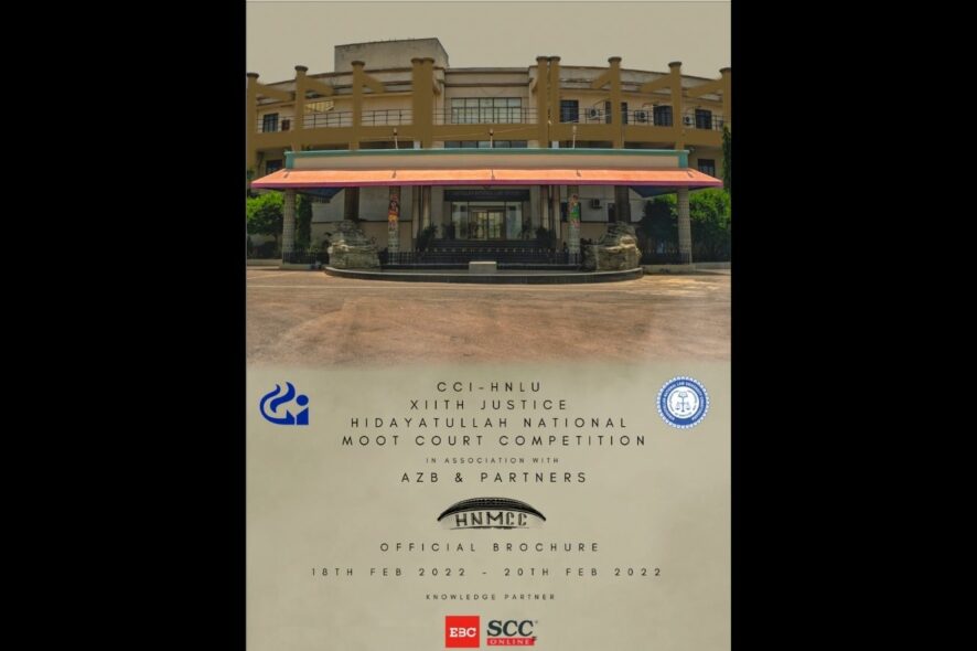 HNLU, Raipur is proud to announce its 12th edition of CCI-HNLU 12th Justice Hidayatullah National Moot Court Competition 2022 in association with AZB & Partners, and EBC-SCC Online as their knowledge partner. The moot is scheduled from 18th-20th February 2022.