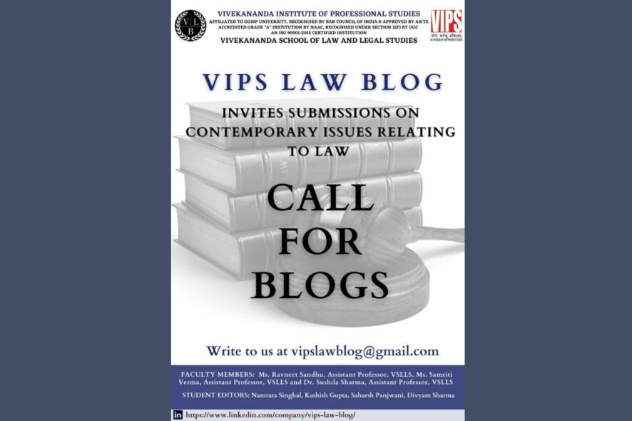 The VIPS Law Blog (VLB) calls for blogs on a rolling basis on any contemporary issue relating to law. This is to clarify that since the nature of our blog is a generalist blog, the authors are at liberty to choose any relevant theme/topic relating to law.