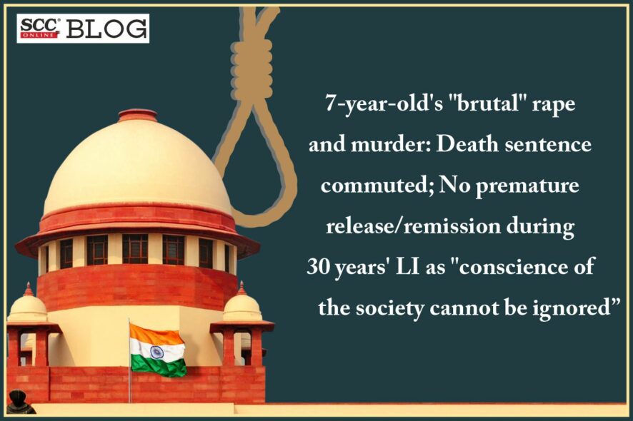 Supreme Court: In a case where a man had brutally raped and murdered a 7-year-old girl, the 3-judge bench of AM Khanwilkar, Dinesh Maheshwari* and CT Ravikumar, JJ has reversed the concurrent findings of the Courts below and has commuted the death sentence into that of imprisonment for life, with the stipulation that the appellant shall not be entitled to premature release or remission before undergoing actual imprisonment for a period of 30 years.