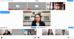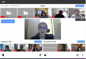 12:15: The judges enquire about the Bills of Lading and the contracting state. The counsel begins explaining, however, the judges need more clarifications. The respondent is frantically writing down answers in the chatbox and the counsel is listening intently, trying to recall anything that will help solve Mr. Bijish’s queries.