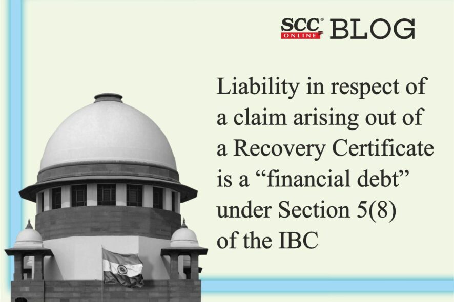 Supreme Court: The 3-judge bench of L. Nageswara Rao, BR Gavai* and AS Bopanna, JJ has held that a liability in respect of a claim arising out of a Recovery Certificate would be a “financial debt” within the meaning of clause (8) of Section 5 of the IBC. Consequently, the holder of the Recovery Certificate would be a financial creditor within the meaning of clause (7) of Section 5 of the IBC. As such, the holder of such certificate would be entitled to initiate CIRP, if initiated within a period of three years from the date of issuance of the Recovery Certificate.