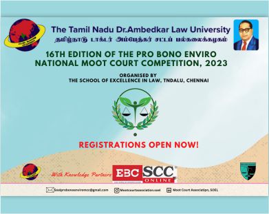 School of Excellence in law takes immense pleasure in announcing the 16th Edition of the Pro Bono Enviro National Moot Court Competition, the flagship event of the institution.
