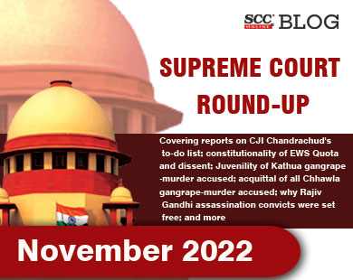 This roundup revisits the analyses of Supreme Court’s judgments/orders on constitutionality of EWS Quota and dissent; Juvenility of Kathua gangrape-murder accused; acquittal of all Chhawla gangrape-murder accused; why Rajiv Gandhi assassination convicts were set free, and more. It also covers reports on Justice Chandrachud’s appointment as the 50th CJI and his to-do-list; CJI UU Lalit’s retirement; explainers on important law points; some Never Reported Judgments; and career trajectory and important decision of Justice BR Gavai.