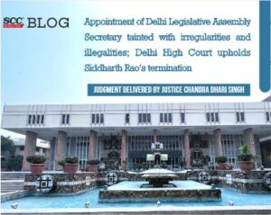 Delhi High Court: In a petition filed by the petitioner under Article 226 of Constitution seeking quashing the impugned order dated 06-12-2013 passed by State thereby terminating Petitioner (Secretary, Delhi Legislative Assembly) from his service and holding all his appointments in Delhi Legislative Assembly, illegal and thereby relieving the petitioner from the post of secretary, Delhi Legislative Assembly, Chandra Dhari Singh, J., held that the appointment of the petitioner is in the teeth of law and cannot be saved and thus, cannot be termed as illegal.