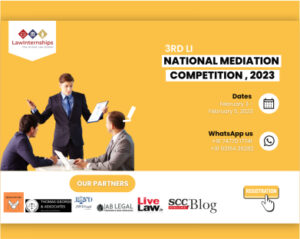 3rd LI National Mediation Competition 2023 is an online competition organized by LawInternships (The Online Law School). We had it’s 1st and 2nd chapter in the year 2020 and 2022 respectively with the vision to promote process of mediation to the young minds. With mediation gaining traction as an effective and efficient means of alternative dispute resolution, with the same inspiration LawInternships (The Online Law School) continuing the third chapter of National Mediation Competition. This competition will be conducted virtually allowing the students to hone their advocacy skills with respect to mediation. This Competition will provide an opportunity to the participants to develop the requisite skills for a dynamic process of Mediation. The competition invites participation either in team or as an individual.