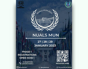 The NUALS MUN 2023 organised by the National University Of Advanced Legal Studies, Kochi is back again to continue the legacy of its past ventures with its 4th Edition and is scheduled to be conducted on the dates of 27th, 28th, 29th January 2023. We present an opportunity for young students across the country to debate real-world problems facing today's international community and develop valuable leadership skills while having a great time!