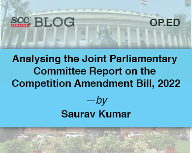 1. Joint Parliamentary Standing Committee on Finance, Report on Competition (Amendment) Bill, 2022, <https://164.100.47.193/lsscommittee/Finance/17_Finance_52.pdf>.