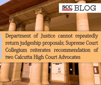 Supreme Court Collegium reiterated its earlier recommendation in respect of Advocate Amitesh Banerjee and Advocate Sakya Sen on 01-09-2021 and 08-10-2021 respectively. The Department of Justice, however, once again referred back the file on 25-11-2022.
