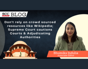Don’t rely on crowd sourced resources like Wikipedia; SC cautions Courts & Adjudicating Authorities Bhumika Indulia 3 years ago Share on Facebook (Opens in new window) Facebook Share on X (Opens in new window) X Share on LinkedIn (Opens in new window) LinkedIn Share on WhatsApp (Opens in new window) WhatsApp Share on Telegram (Opens in new window) Telegram More Print (Opens in new window) Print Email a link to a friend (Opens in new window) Email Share on Reddit (Opens in new window) Reddit Don’t rely on crowd sourced resources like Wikipedia; Supreme Court cautions Courts & Adjudicating AuthoritiesDateJanuary 20, 2023In relation toCase BriefsDelhi High Court directs Wikipedia to delete defamatory allegations against news agency ANI and restore public editing rights on its pageDateApril 7, 2025In relation toCase Briefs‘Courts open institutions to public; Even sub-judice issues can be debated by public and the press’: SCDateMay 9, 2025In relation toHot Off The Press