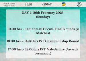 15:00 hrs- With this, we come to the end of the Phillip C. Jessup International Moot Court Competition 2023. The Champions Round indeed lived up to its mark with so many intense arguments and rebuttals. Now we shall meet you all at the Valedictory Ceremony where we shall announce the results of the competitions