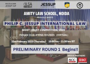 Indian Rounds of Philip C. Jessup International Law Moot Court Competition, 2023 | Jointly hosted by Amity Law School, Noida & ILSA | Live Blogging & Updates