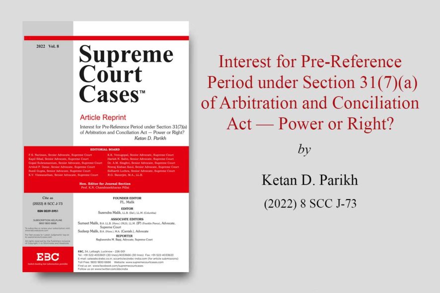 This article analyses Section 31(7)(a) of the Arbitration and Conciliation Act, 1996 (“the Act”) in respect of pre-reference period. The question is whether that section confers a power upon the Arbitral Tribunal to grant interest for the pre-reference period and that the power has to be exercised in accordance with the contract or the law or applicable trade usage; or whether the section itself is a source of right to claim interest for the pre-reference period and a party can claim interest based on this section irrespective of whether there is any right under the contract, or in law, or according to applicable trade usage, to claim such interest. There is a line of judgments which adopts the latter view, namely, the section itself is a source of right to claim interest for the pre-reference period and a party can claim interest based on this section irrespective of whether there is any right under the contract, or in law, or according to applicable trade usage, to claim such interest. This article opines that the correct view is the former view, namely, the section confers a power upon the Arbitral Tribunal to grant interest for the pre-reference period and that the power has to be exercised in accordance with the contract and/or the law and/or applicable trade usage.
