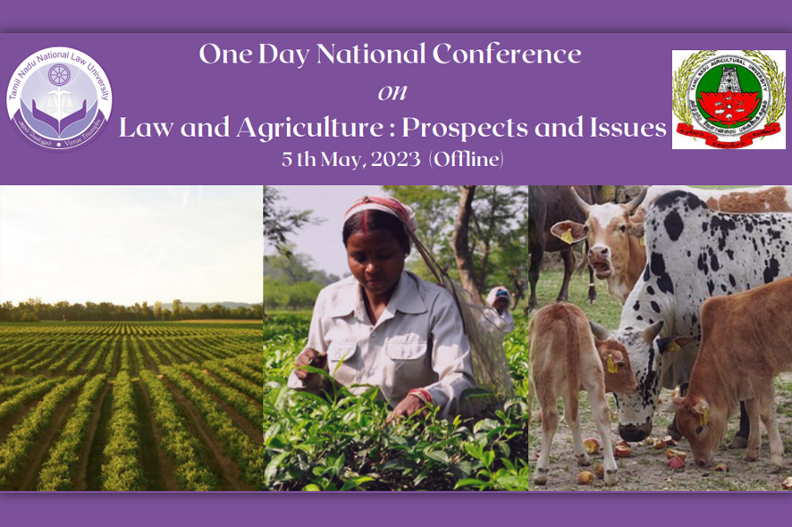 The One Day National Conference on Law and Agriculture: Prospects and Issues is jointly organised by the Centre for Law and Agriculture, Tamil Nadu National Law University, Tiruchirappalli and Tamil Nadu Agricultural University, Anbil Dharmalingam Agricultural College and Research Institute, Tiruchirappalli.