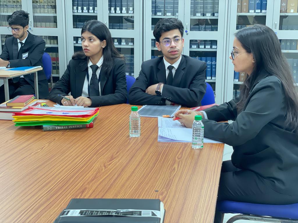 9:00 AM ROUND 1 (PRELIMS) The day of judgement has arrived. The teams greet the judges with cold feet and a tinge of aspiration in their eyes hoping that months of preparation and effort come to fruition. The teams come armed with weighty compendiums of authorities. Some are intimidated by the volley of questions posed by the honourable judges while others remain unruffled, braving them with calm and poise. The petitioners were thinking on their feet, showcasing the great presence of mind. The respondents displayed impeccable knowledge of the intricacies of the law to the astonishment of everyone. The rounds ended with constructive feedback by the pleased judges who emphasised the importance of holding one’s ground and reading between the lines of facts.