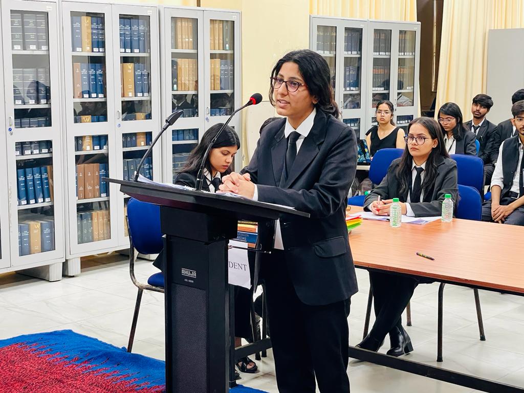 10:37 A.M. – The bench pitches confounding questions about the jurisdiction of the case. The Counsel effectively thinks on her feet and answers all the questions thus proceeding with further issues. She pleads her case with an impressive set of claims backed by various factual and logical premises. Meanwhile, time is running out but counsel 01 seems to have an unending stock of arguments. However, only so much can be said in so little time. Thus, the courtroom awaits her best arguments in the remaining time so that the team establishes their case with flying colours!