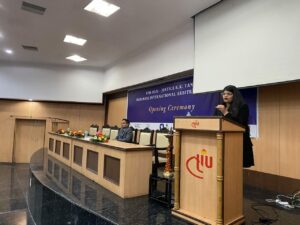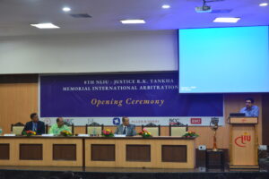 The ceremony begins with Prof. (Dr.) V. Vijaykumar, Vice Chancellor, NLIU thanking the Chief Guest, Mr. Justice Sujoy Paul, the Guest of Honor, Mr. Justice Amit Bansal, Mr. Vivek Tankha, Mr. Vivekananda Neelakantan, the Drafters, the Judges, the Administrative staff and the participants for contributing towards the success of the event.