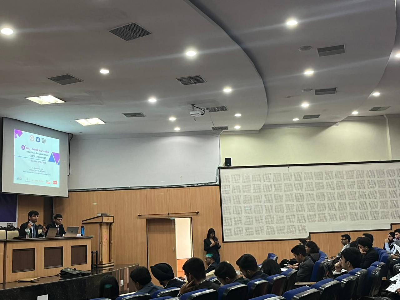 The arbitrators of the round are Ms. Meenakshi Kumar and Ms. Sakshi Pawar. The members of the tribunal ask the respondents whether the tribunal has jurisdiction over the matter, upon which the respondents give their assent. The members then ask the respondent to move on to the second matter of the validity of parties since he assents to the jurisdiction of the tribunal. The tribunal further asks the respondent that since they have been a part in the shaping of the contract, they can contend that they are not a party altogether. The claimants contend that the issue is not of the legal capacity of the company per se. Questions on the formal validity of the contract are raised. The members also raise questions over the legal sanctity of many copies in a particular email, an aspect on which the majority of the claimant’s side relied, and any legal backing was asked for the same. During the rebuttals, the respondents point out the procedural and substantial flaws of the claimant’s argument, and the claimants provide their answers to the same. The round ends with the members of the tribunal providing constructive feedback to the teams.