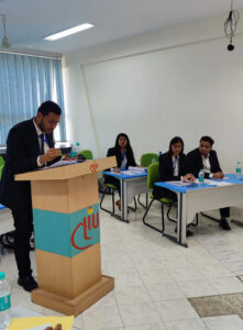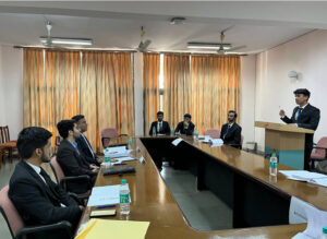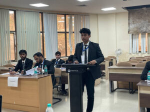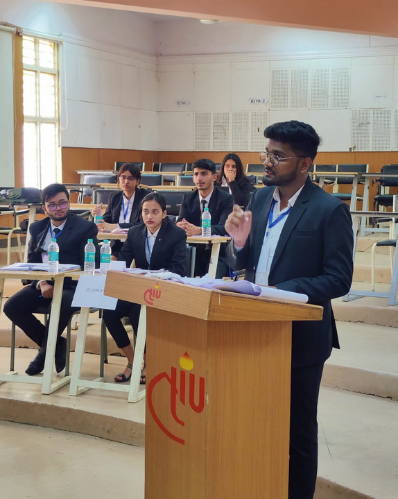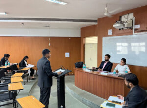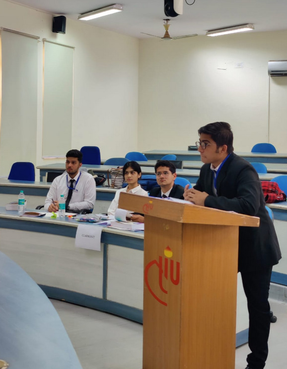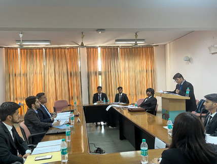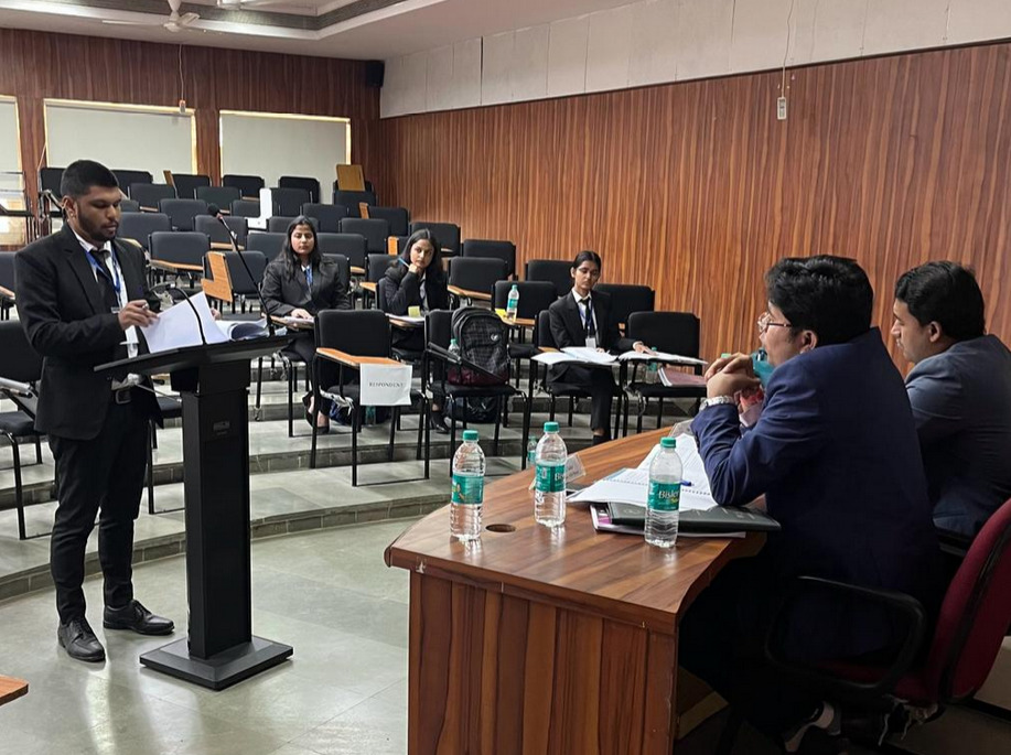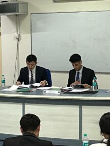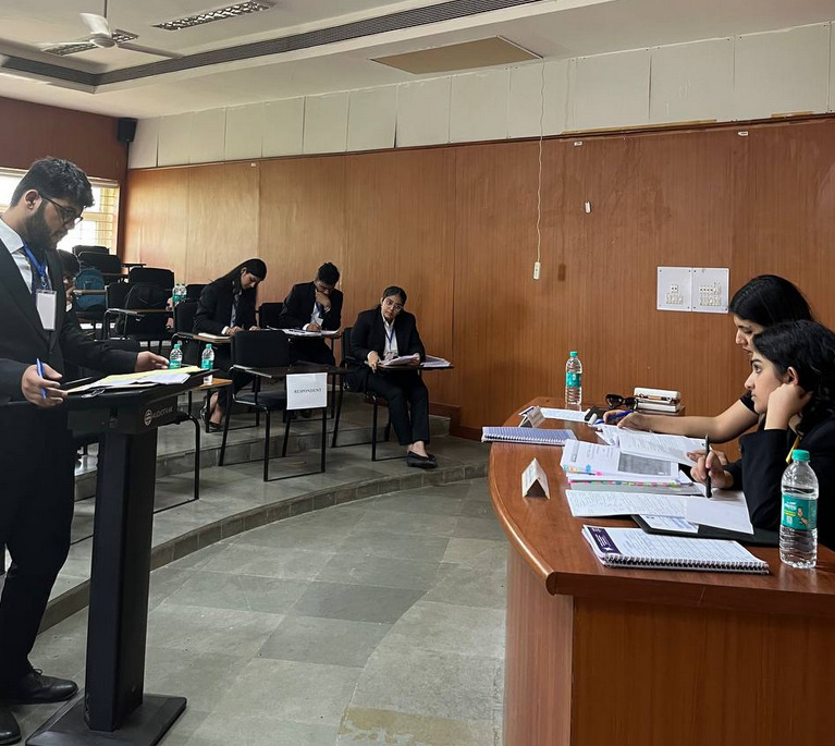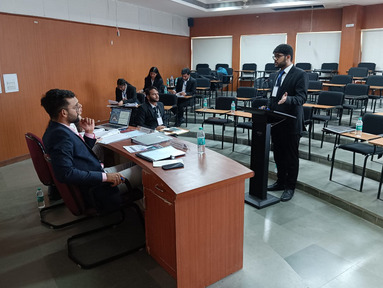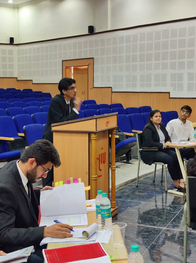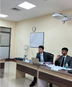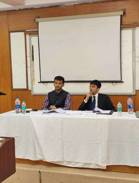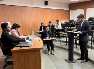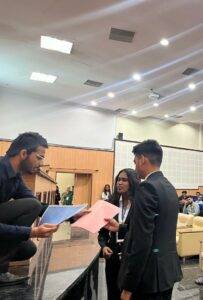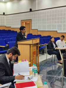 Day 2 begins with the Judges’ Briefing by Mr. Aryaman Vachher and Mr. Karthik Sarma, fourth-year students of the University. Once the matchups for the preliminary rounds are announced, Mr. Sarma deals with the substantive issues of the problem. He briefly mentions the material facts of the problem. Mr. Vachher then deals with the procedural issues of the moot, identifying the possible questions that could be asked during the round. The briefing concludes and the judges head to their respective courtrooms, to begin the first preliminary rounds.