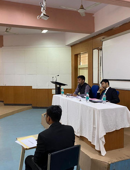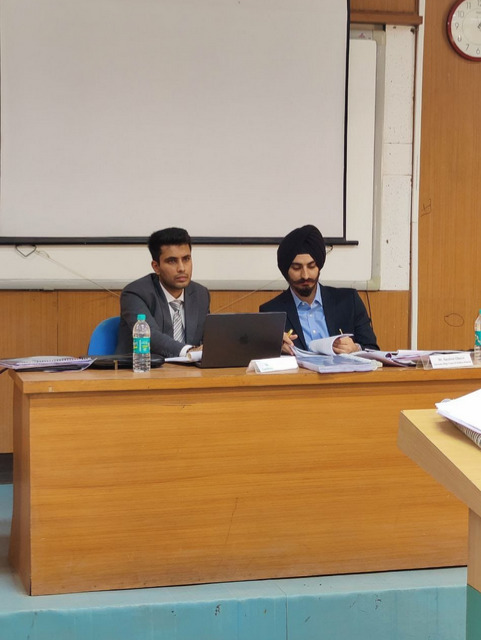 The arbitrators of the round are Mr. Yash S. Vyas and Ms. Shanya Cyrus Irani. The round begins with the Speaker on the behalf of the Respondent laying down the structure of his speech and the time division between him and his co-counsel. This was followed by the speaker contending that, in the case at hand, the applicable law must be that of India. The arbitrators questioned the speaker and sought clarification on one of the points of facts, to which, the speaker replied by referring to the Case Record.