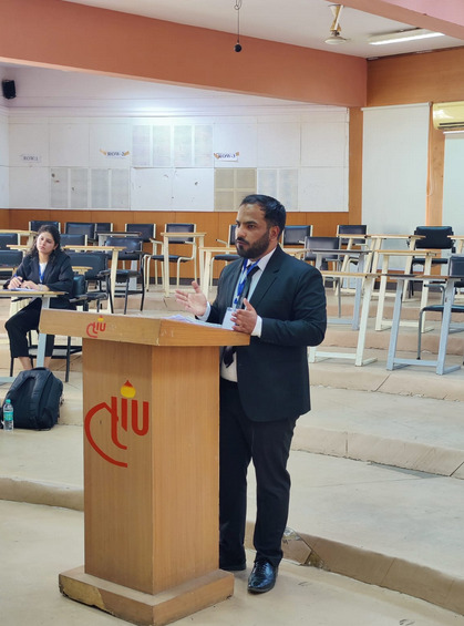 After the opening session, a special session by Dr. Sumeet Malik commences. He begins by saying that good legal research is imperative to be successful in a legal career. He also comments that the law is subject to change; hence, a lawyer must be abreast with the changes in the law and have good analytical skills.
